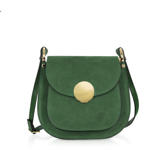 LeParmentier Agave Suede and Smooth Leather Shoulder Bag - Green Camel