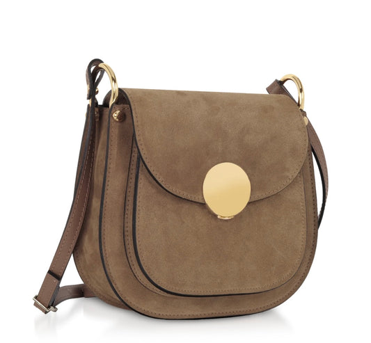 LeParmentier Agave Suede and Smooth Leather Shoulder Bag - Taupe