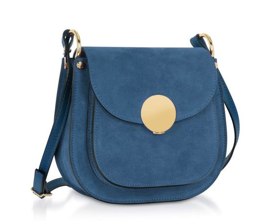 LeParmentier Agave Suede and Smooth Leather Shoulder Bag - Denim