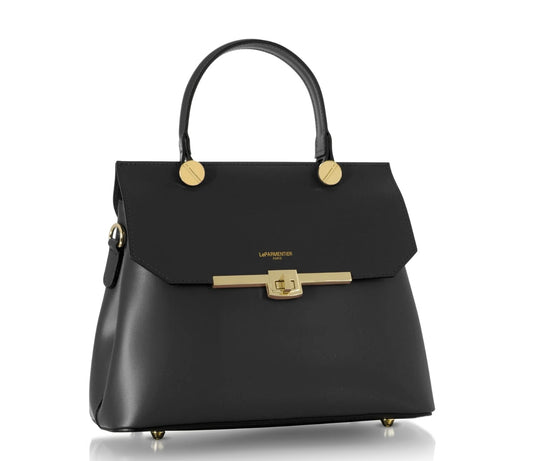LeParmentier Atlanta Top Handle Satchel Bag w/Shoulder Strap - Black