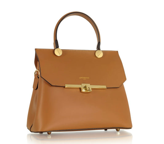 LeParmentier Atlanta Top Handle Satchel Bag w/Shoulder Strap - Caramel