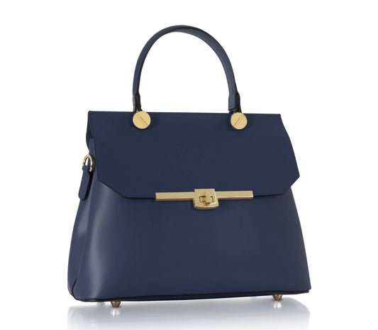 LeParmentier Atlanta Top Handle Satchel Bag w/Shoulder Strap - Navy Blue