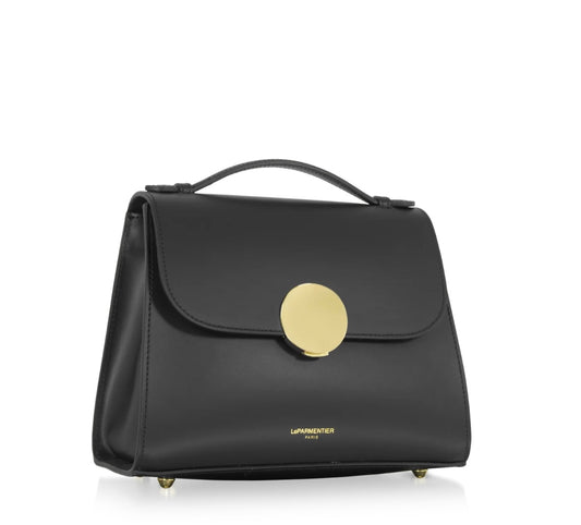 LeParmentier Bombo Top-Handle Satchel Bag with Strap - Black
