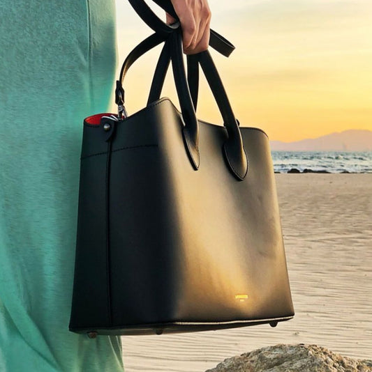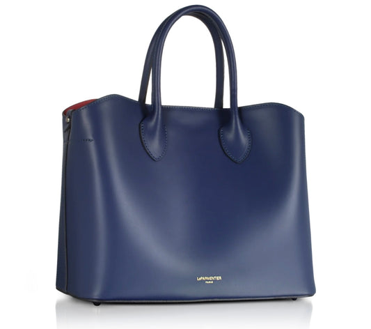 LeParmentier Jackie Leather Tote Bag - Navy Blue