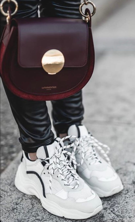 LeParmentier Agave Suede and Smooth Leather Shoulder Bag - Burgundy