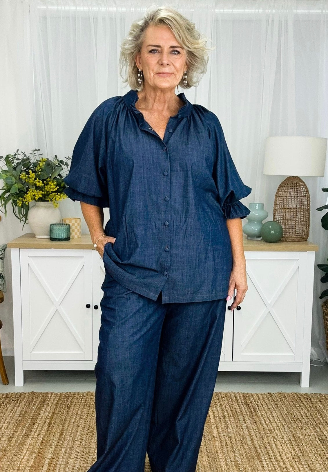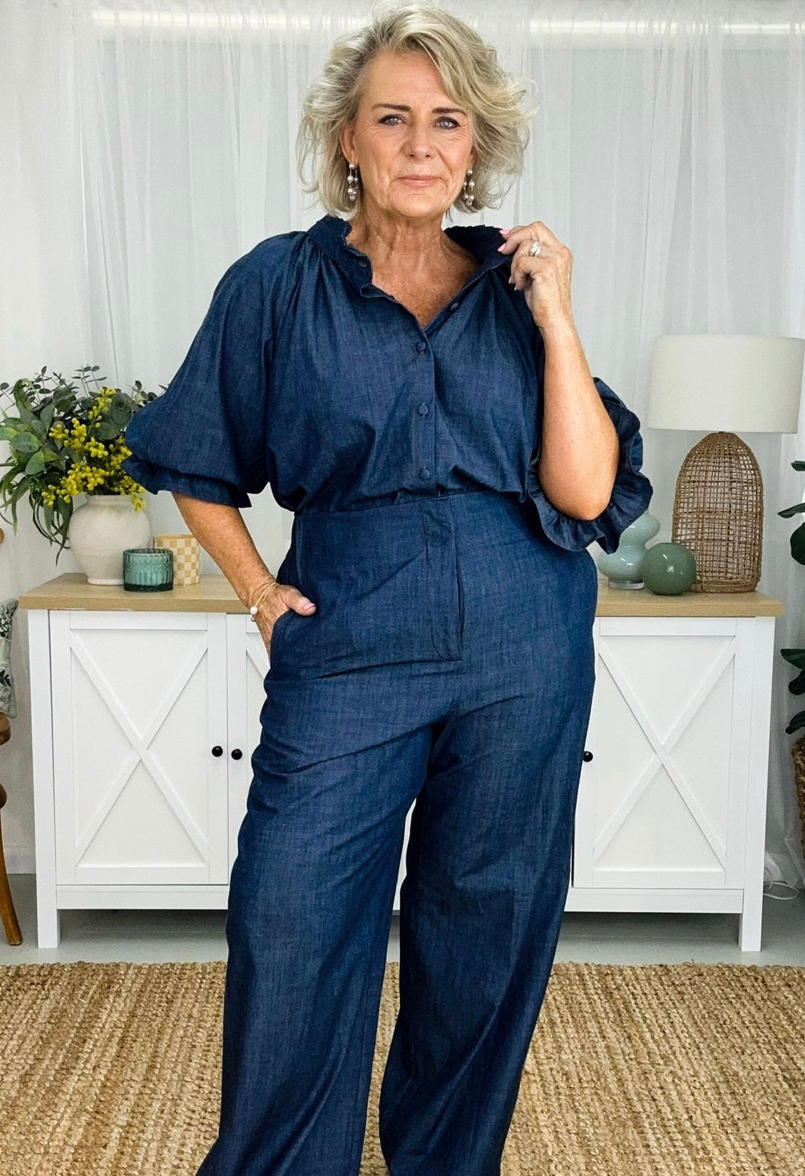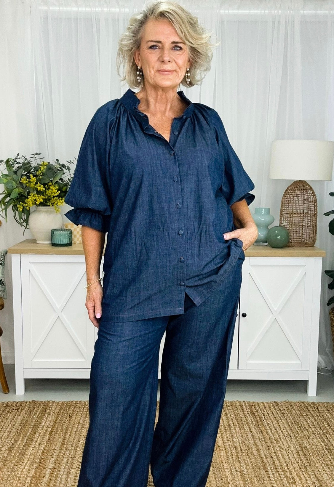 Daisy has all the gorgeous features of our fave Dahlia dress, just as a top version. Daisy is a timeless essential designed to elevate your everyday style effortlessly. Featuring a ruffled collar and relaxed button-down fit, perfect for transitioning seamlessly from day to night. The full long sleeves adorned with ruffled cuffs add a touch of feminine flair to this staple piece. Rediscover the beauty and simplicity of the Daisy shirt. If you’re looking for feminine she’s your girl.