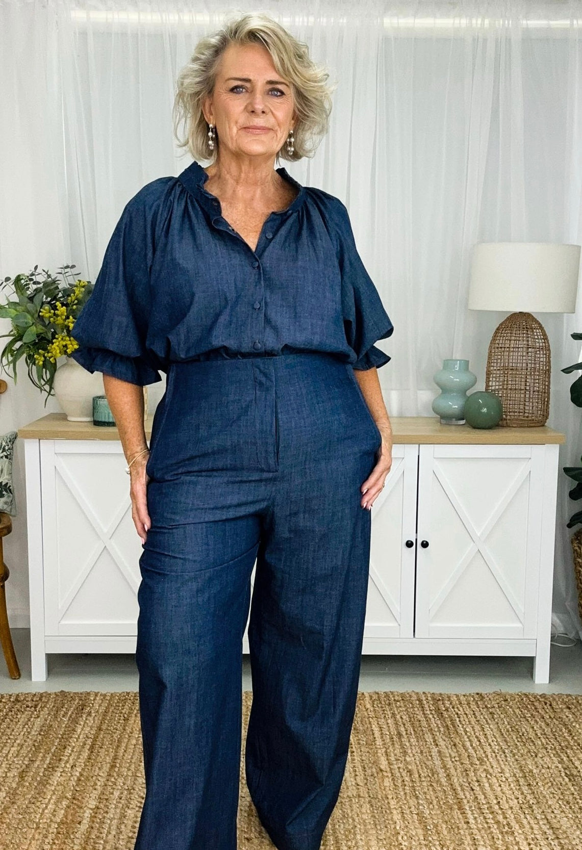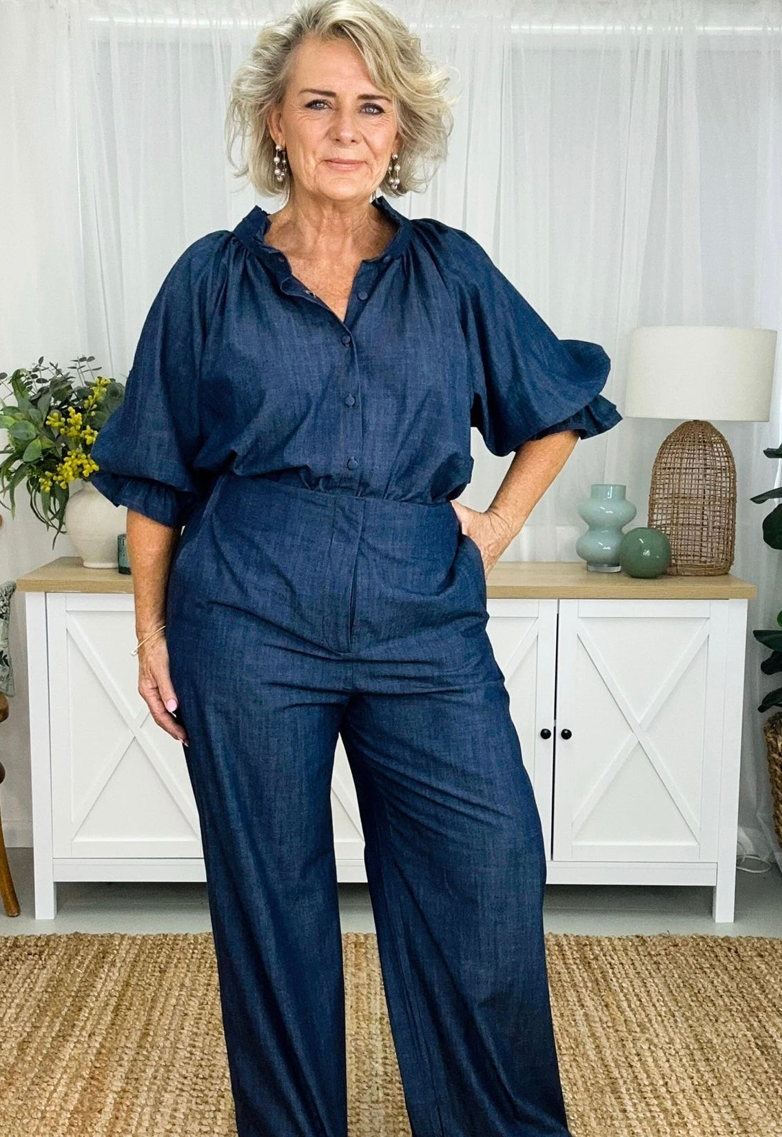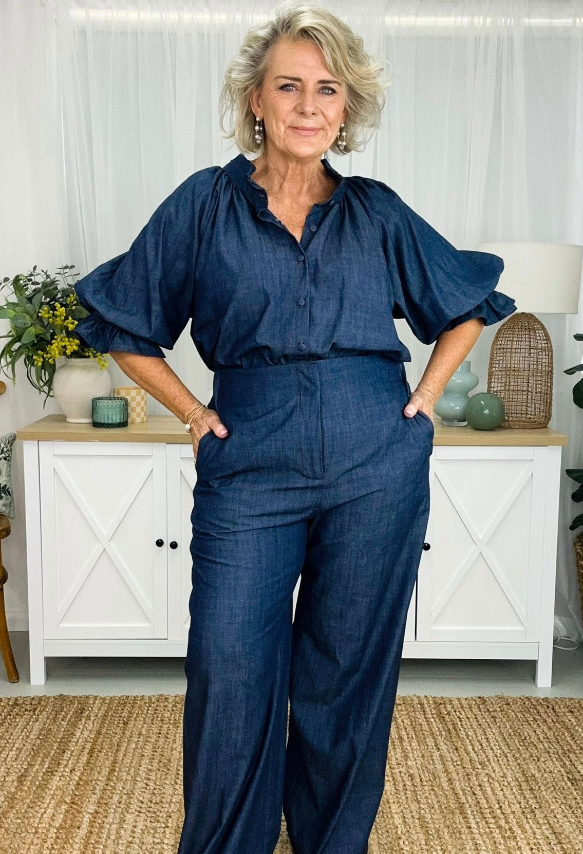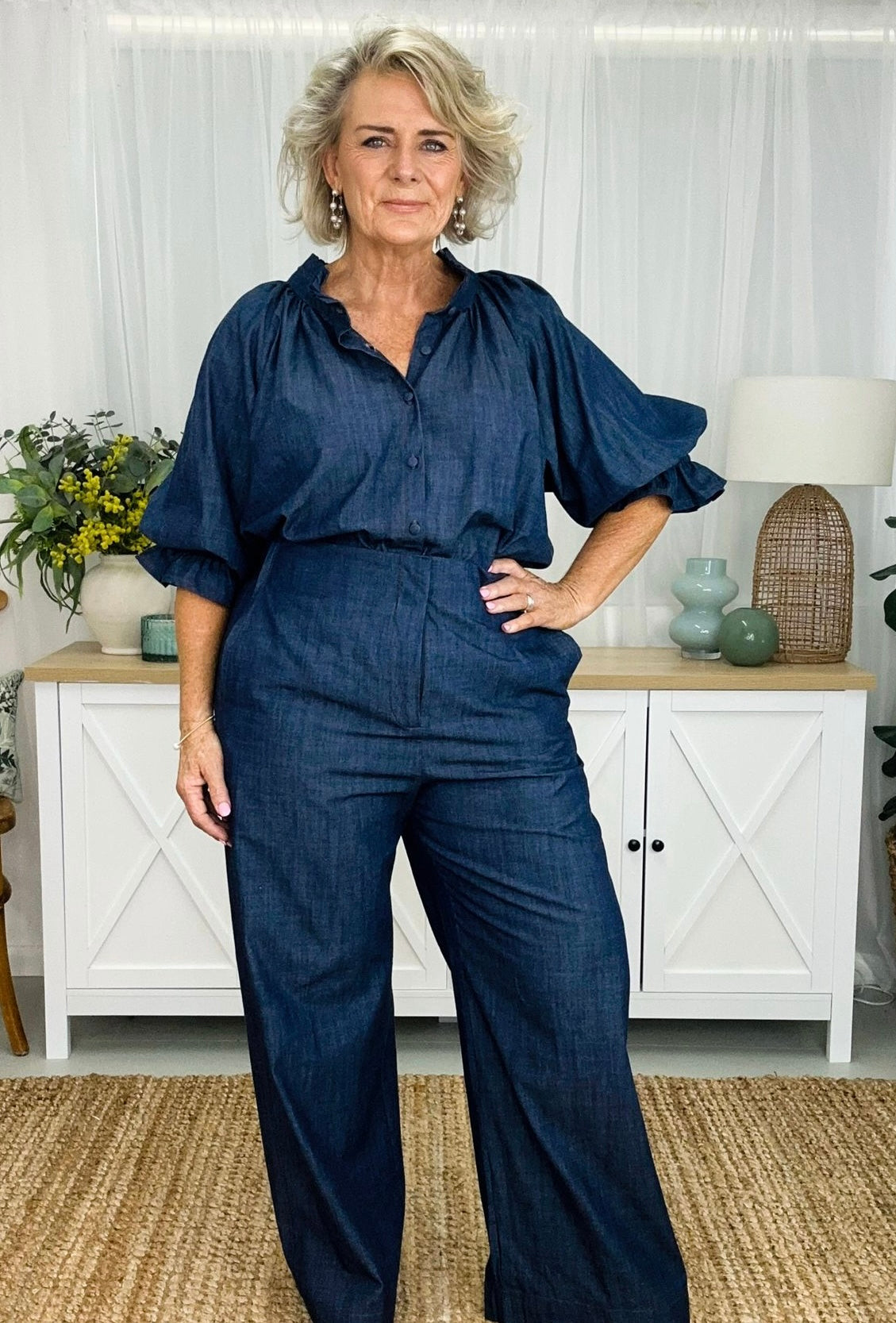 Daisy has all the gorgeous features of our fave Dahlia dress, just as a top version. Daisy is a timeless essential designed to elevate your everyday style effortlessly. Featuring a ruffled collar and relaxed button-down fit, perfect for transitioning seamlessly from day to night. The full long sleeves adorned with ruffled cuffs add a touch of feminine flair to this staple piece. Rediscover the beauty and simplicity of the Daisy shirt. If you’re looking for feminine she’s your girl.