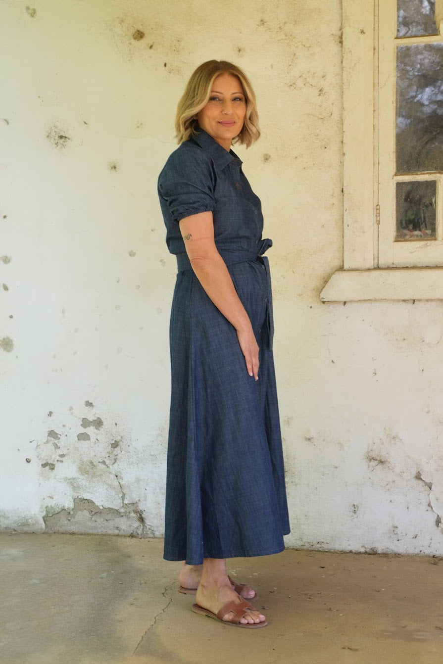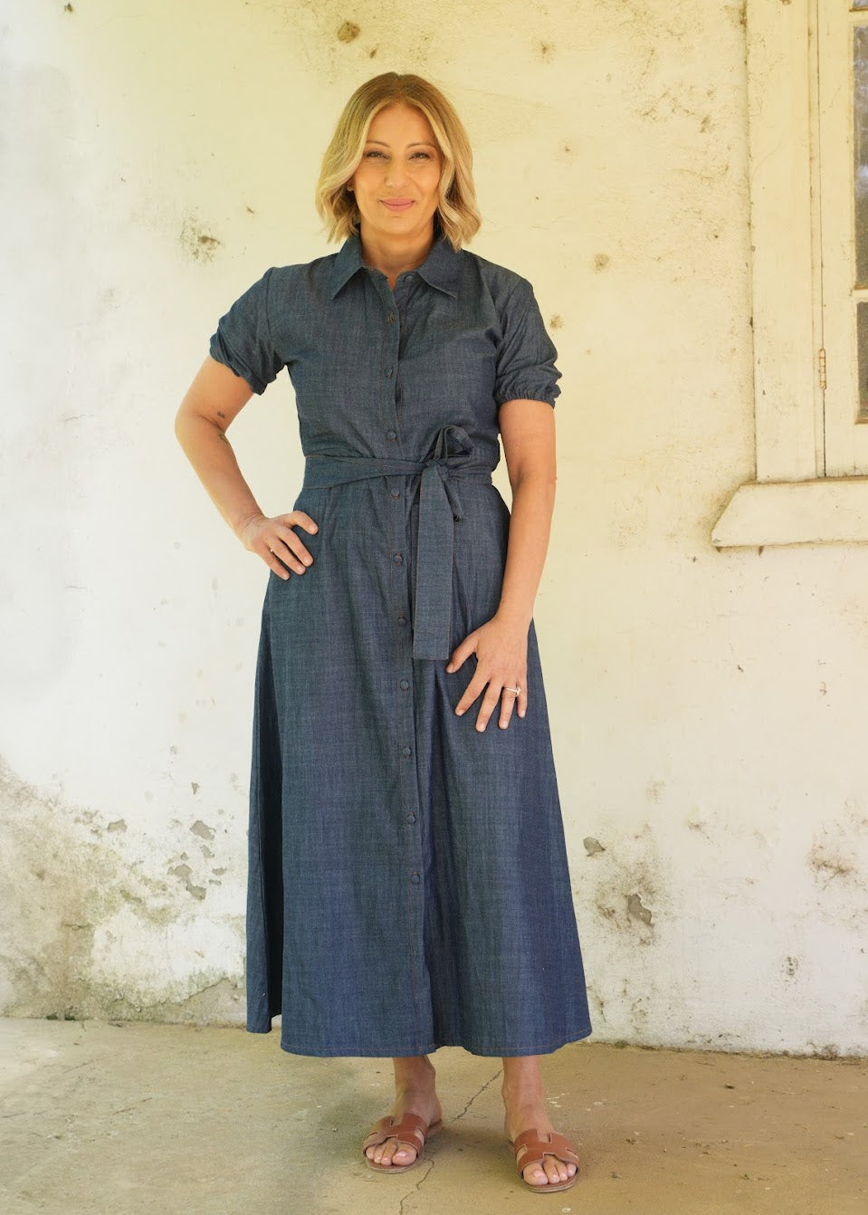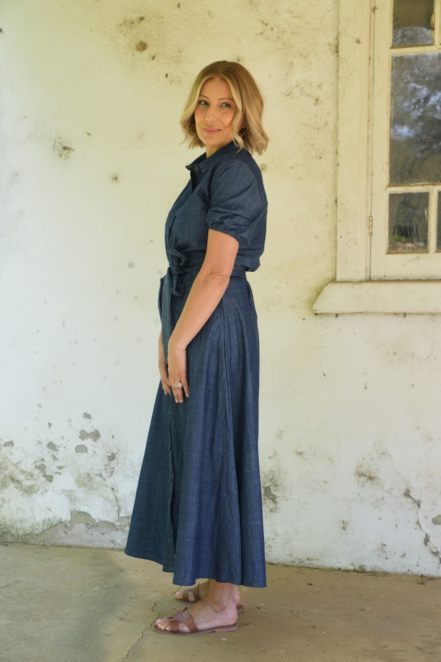 The Fleur dress features a button-through design that allows for effortless wearability and adds a touch of sophistication. Complete with a tie belt, it offers versatility in creating a customised fit and accentuating your waistline. The inclusion of convenient side pockets adds both style and functionality to this gorgeous dress. The Fleur sleeve has a slight puff and is elasticated for comfort.