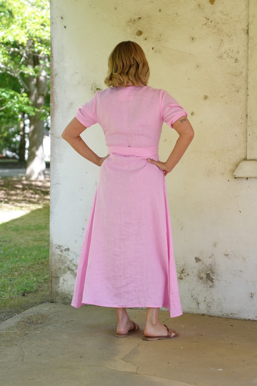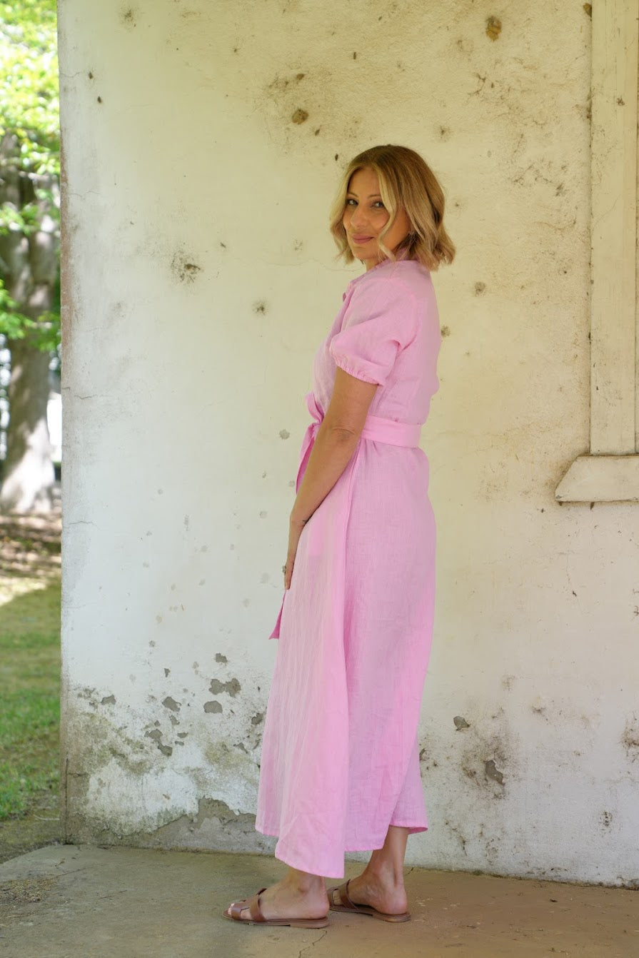 The Fleur dress features a button-through design that allows for effortless wearability and adds a touch of sophistication. Complete with a linen tie belt, it offers versatility in creating a customised fit and accentuating your waistline. The inclusion of convenient side pockets adds both style and functionality to this gorgeous dress. The Fleur sleeve has a slight puff and is elasticated for comfort.