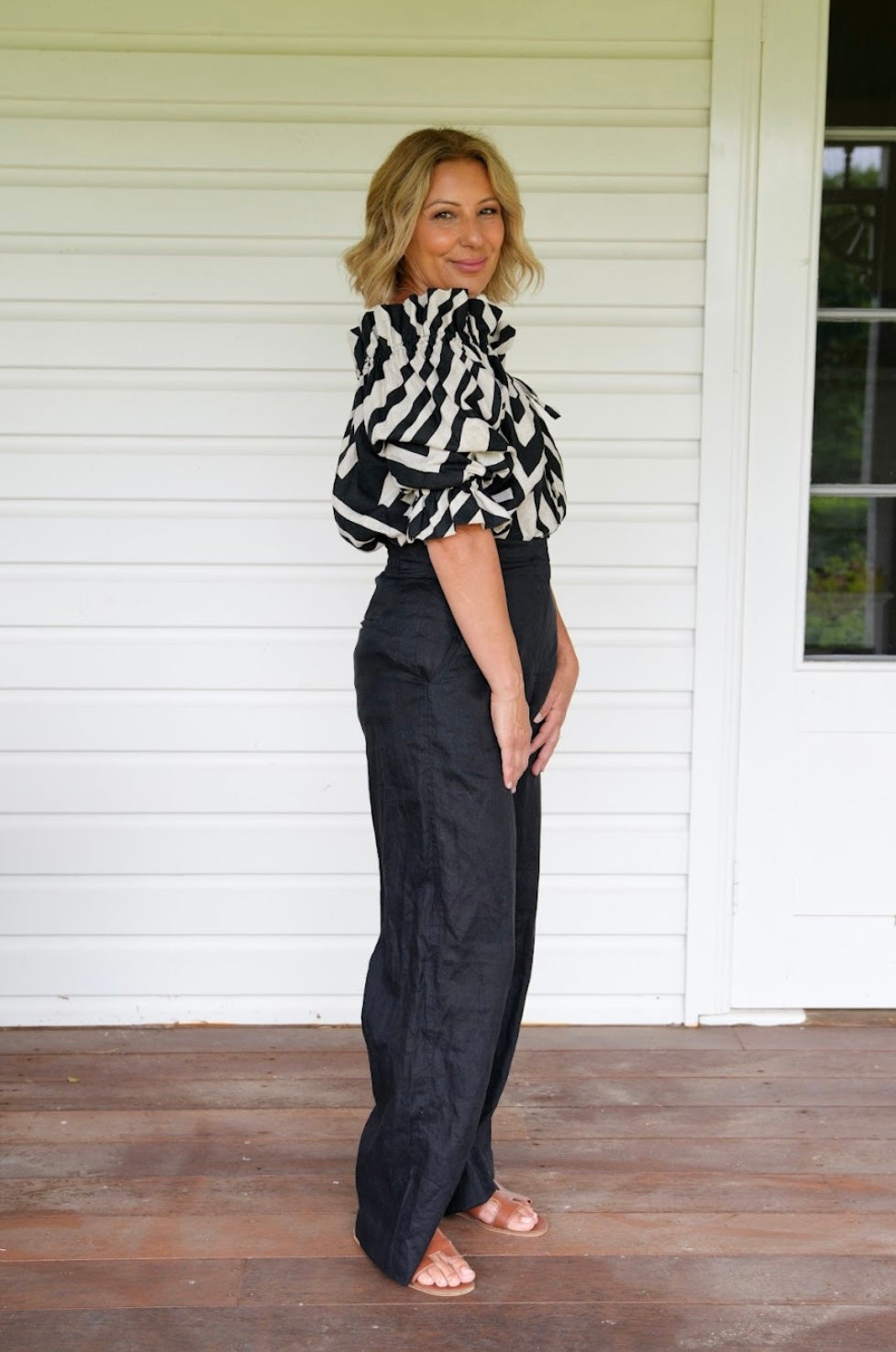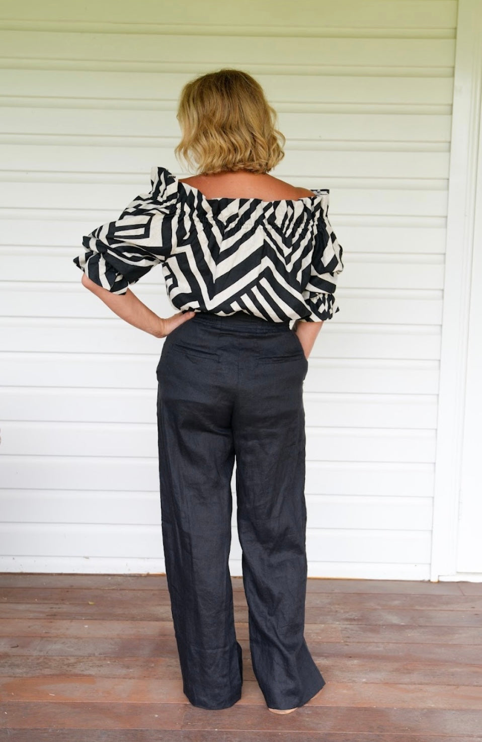 Introducing the Ginny pant. With their elastic back and flat front these pants offer a flattering fit that’s both chic and relaxed. Featuring practical side pockets and an optional linen tie for added flair, they’re perfect for any occasion. Pair them with your favourite DTMH top or shirt to complete your winter look with effortless sophistication.