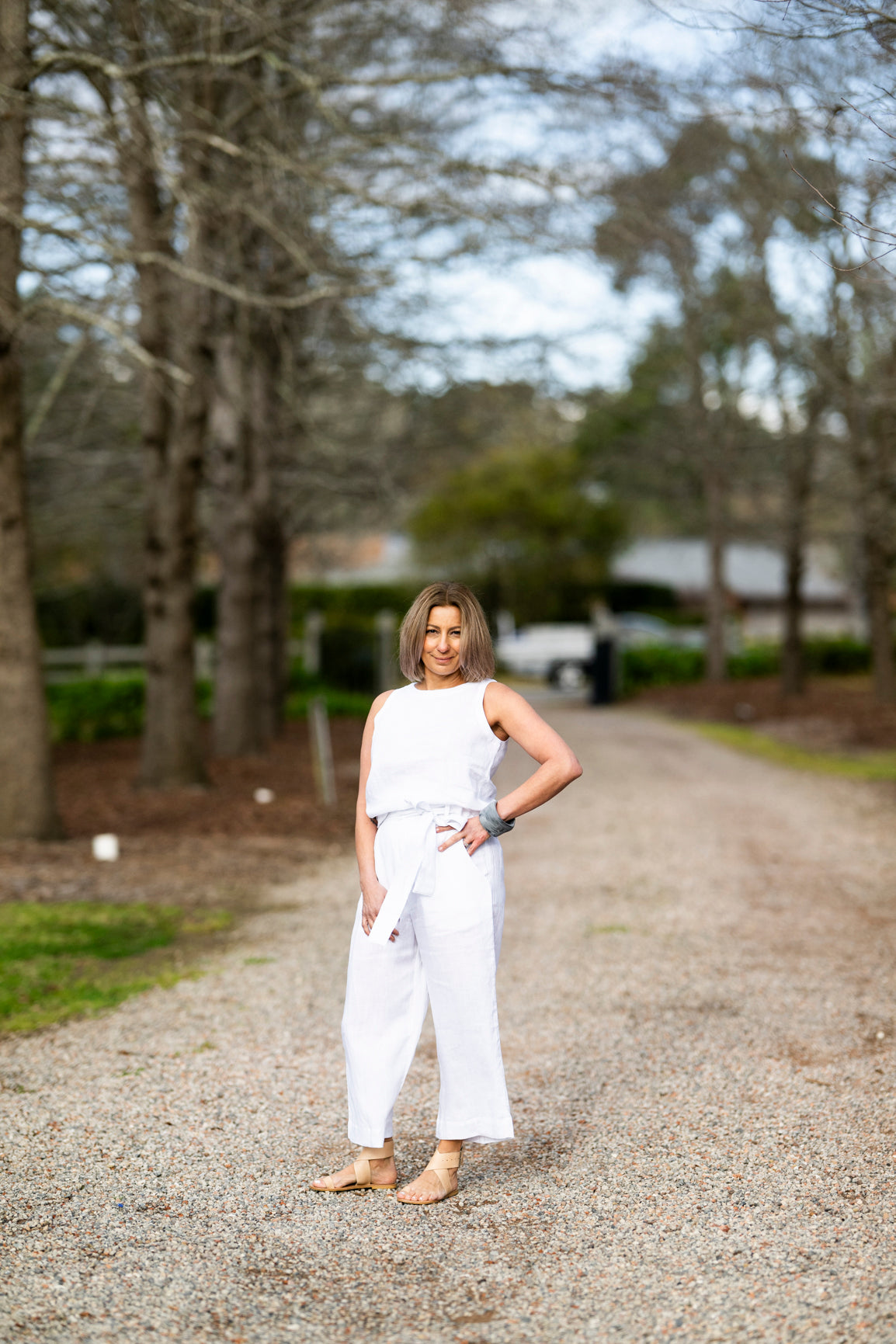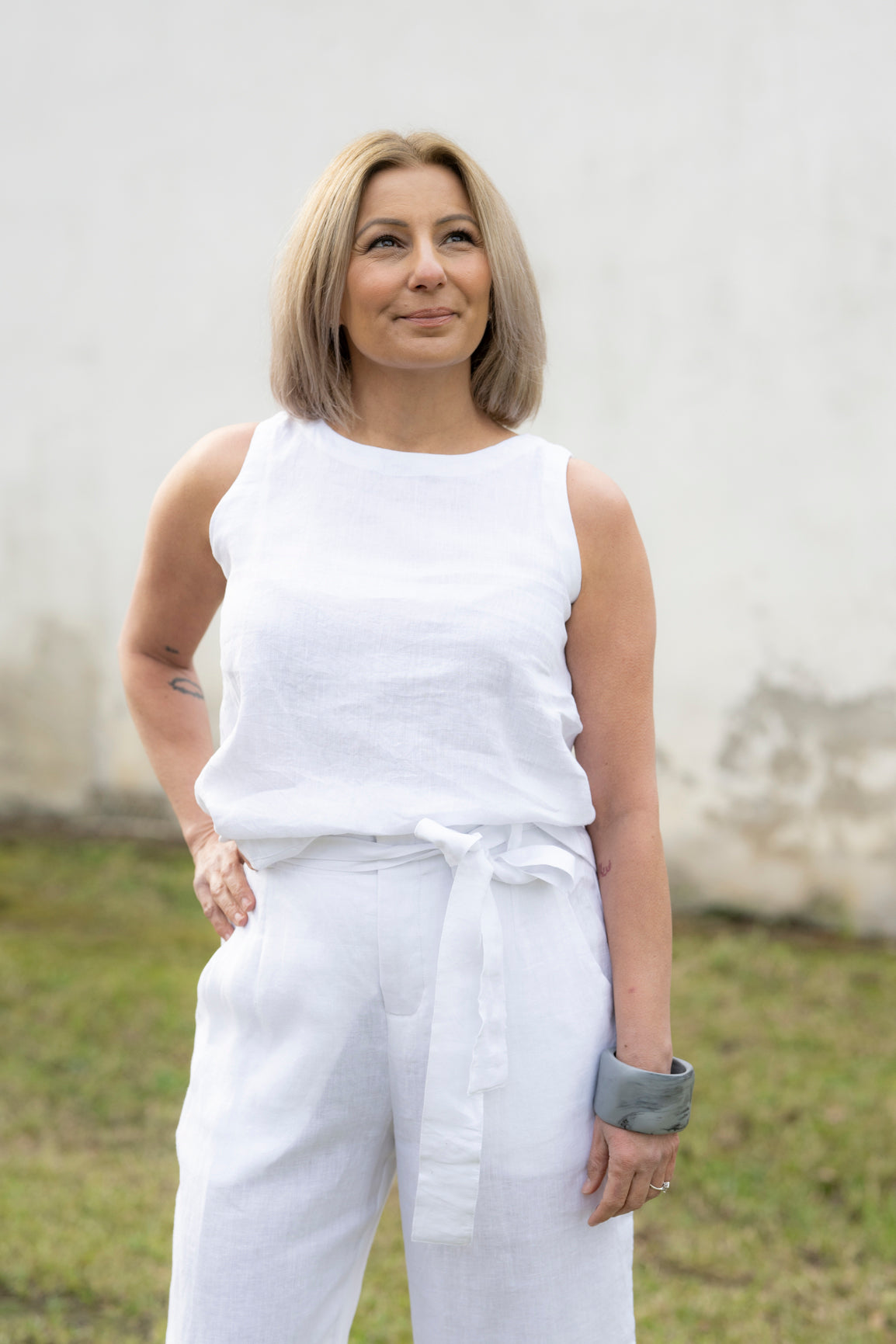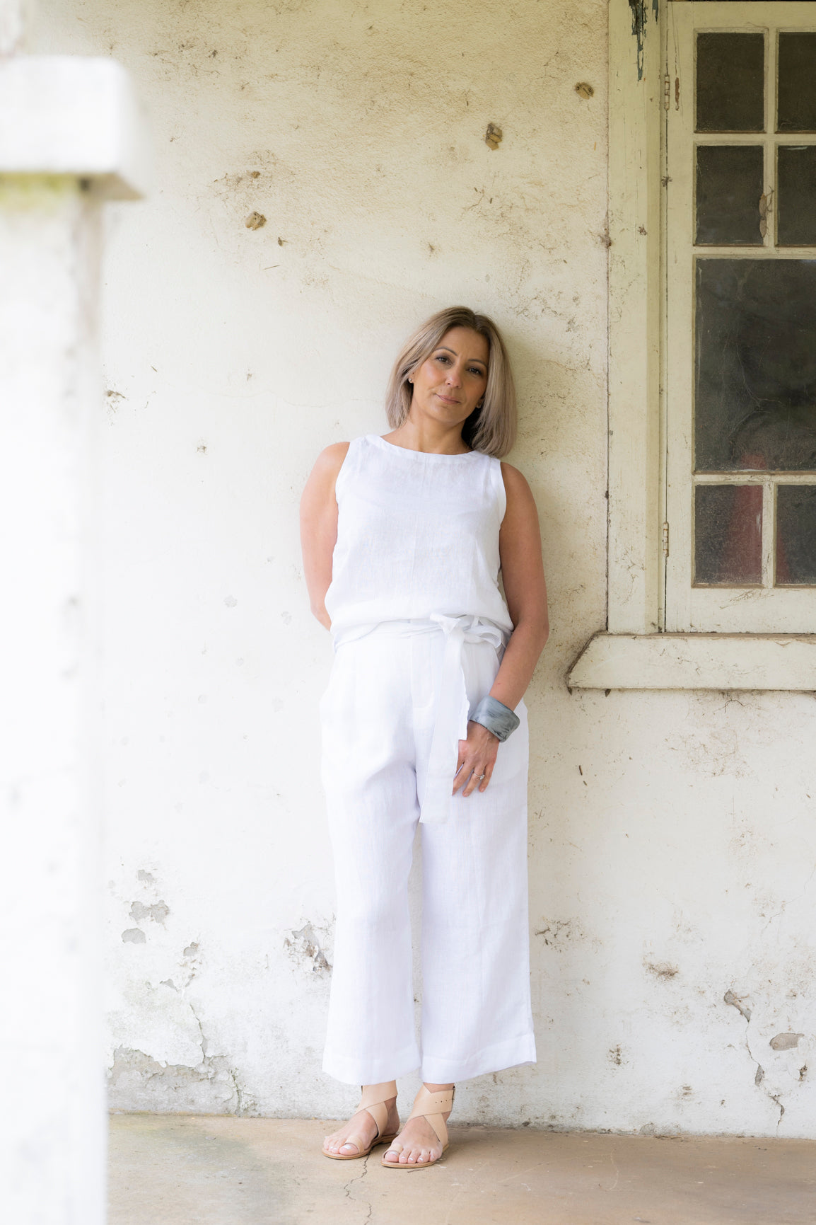 Sophie Linen Tank Top - White
